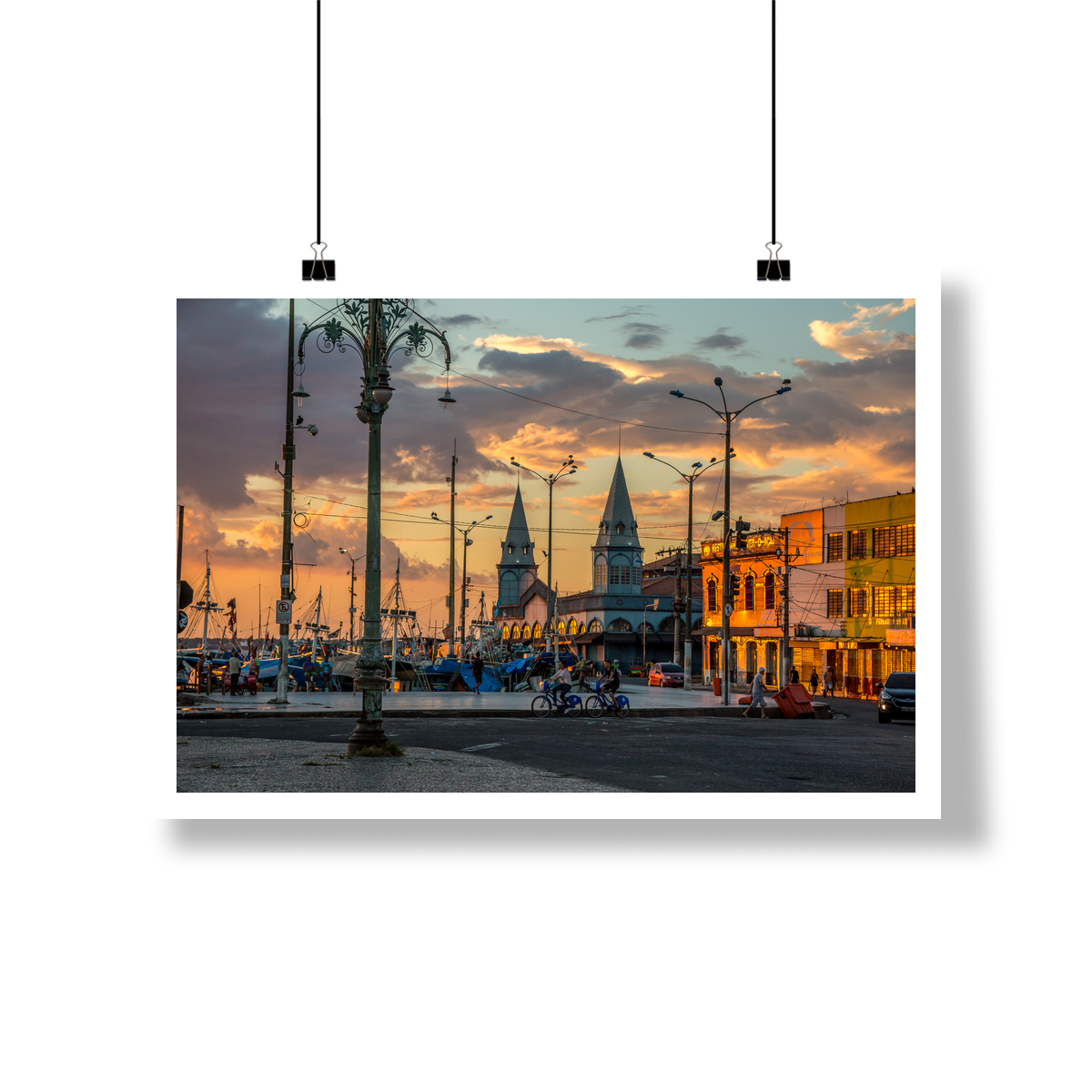 Esta fotografia captura a atmosfera mágica do fim de tarde em Belém, quando a luz dourada do sol beija a arquitetura histórica e o céu se enche de cores quentes. Mais que um cartão-postal, o Ver-o-Peso é o coração pulsante da Amazônia, um caldeirão de cheiros, sabores e cultura.