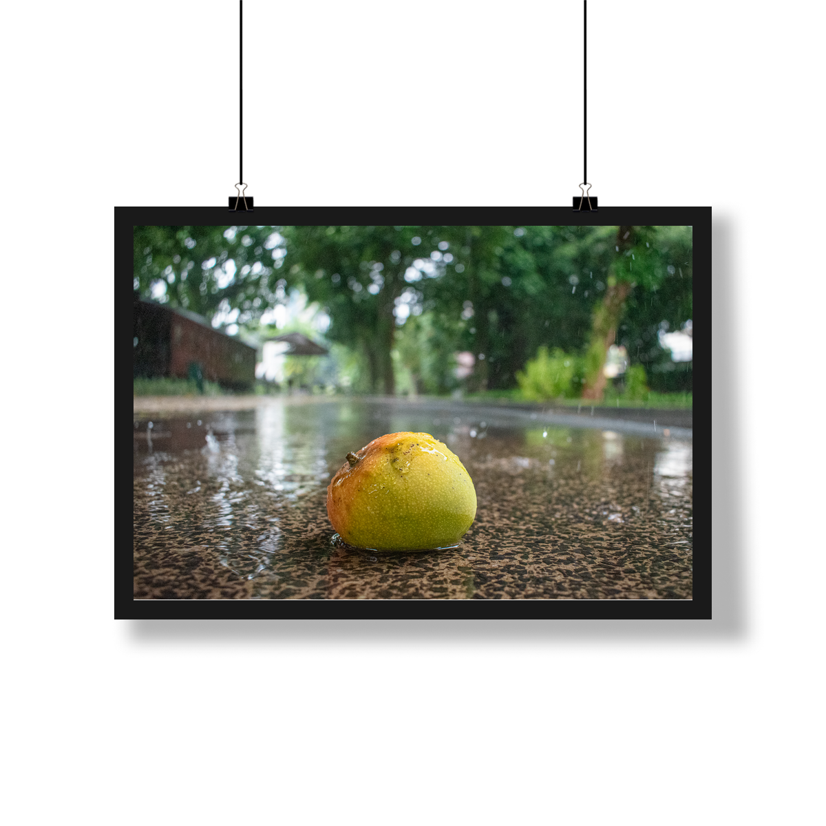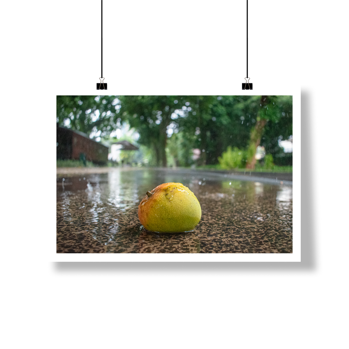 Este quadro captura a alma da nossa "Cidade das Mangueiras" em sua estação mais característica. É a poesia do cotidiano, a beleza de uma fruta que se entrega à força do "toró" da tarde. Uma cena que desperta memórias afetivas, que nos transporta para o som da chuva e para o sabor inconfundível da nossa terra.